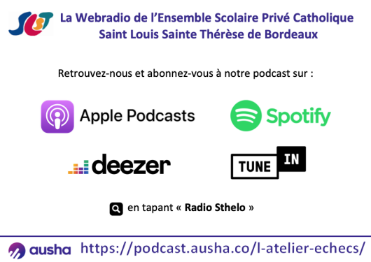 Emissions "L'invité du jour" dans lesquelles des personnalités, en lien avec notre établissement sont invitées et expliquent leur rôle (Mme Isabelle Des Bourboux : directrice diocésaine de Gironde, M. De Wavrechin : président d'OGEC, M. Loubet : secrétaire d'OGEC, Mme Bourieau : enseignante documentaliste, Mme Trovero, présidente de l'APEL et M. De Chalvron (trésorier), la société IConcept : fournisseur de nos équipements numériques...).